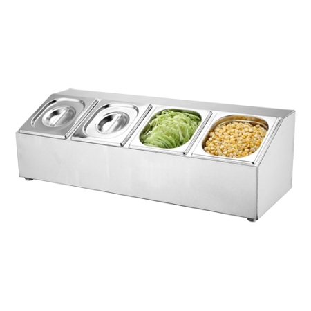 De Garneerunit |4xGN1/6| is de ideale oplossing voor professionele keukens die efficiëntie en hygiëne hoog in het vaandel hebben staan. Deze hoogwaardige garneerunit wordt compleet geleverd met roestvrijstalen GN bakken en deksels, waardoor het een duurzame en betrouwbare keuze is voor elke horecagelegenheid. De roestvrijstalen constructie zorgt niet alleen voor een lange levensduur, maar ook voor een gemakkelijke reiniging en onderhoud, wat essentieel is in drukke keukens. Met de capaciteit om vier GN 1/6 bakken te herbergen, biedt deze unit voldoende ruimte voor het organiseren en presenteren van diverse ingrediënten, van verse groenten en fruit tot sauzen en specerijen. De bijgeleverde deksels zorgen ervoor dat de inhoud van de bakken vers blijft en beschermd is tegen verontreinigingen, wat bijdraagt aan de voedselveiligheid. Deze garneerunit is ontworpen met het oog op gebruiksgemak en functionaliteit, waardoor het een onmisbaar hulpmiddel is voor chefs die snel en efficiënt willen werken. Of u nu een restaurant, cateringbedrijf of een andere horecagelegenheid runt, de Garneerunit |4xGN1/6| biedt de flexibiliteit en betrouwbaarheid die u nodig heeft om uw keuken soepel te laten draaien. Investeer in deze garneerunit en ervaar de voordelen van een goed georganiseerde en hygiënische werkruimte.