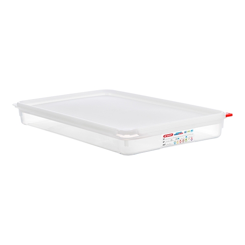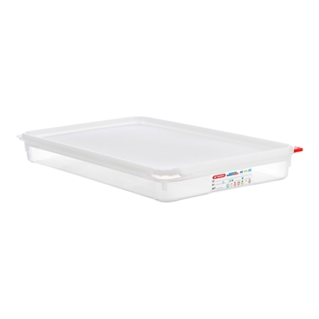 De Voedseldoos GN1/1 wordt compleet geleverd met een Colorclip product coderingsset, die voldoet aan de HACCP-normen. Deze set maakt het eenvoudig om voedsel te categoriseren en te identificeren, wat bijdraagt aan een georganiseerde en veilige voedselopslag. De kleurcodering helpt bij het voorkomen van kruisbesmetting en zorgt ervoor dat voedsel op de juiste manier wordt beheerd volgens de hoogste hygiënestandaarden.