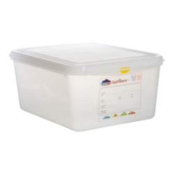 Met zijn robuuste constructie en praktische eigenschappen is de Voedseldoos GN1/2 |200 mm| een onmisbaar hulpmiddel voor iedereen die waarde hecht aan voedselveiligheid, versheid en efficiëntie. Of u nu een chef-kok bent in een drukke restaurantkeuken of een thuiskok die op zoek is naar de beste manier om voedsel te bewaren, deze voedseldoos biedt de perfecte combinatie van functionaliteit en betrouwbaarheid. Kies voor de Voedseldoos GN1/2 |200 mm| en ervaar het gemak en de gemoedsrust die gepaard gaan met het gebruik van een product dat is ontworpen met uw behoeften in gedachten.