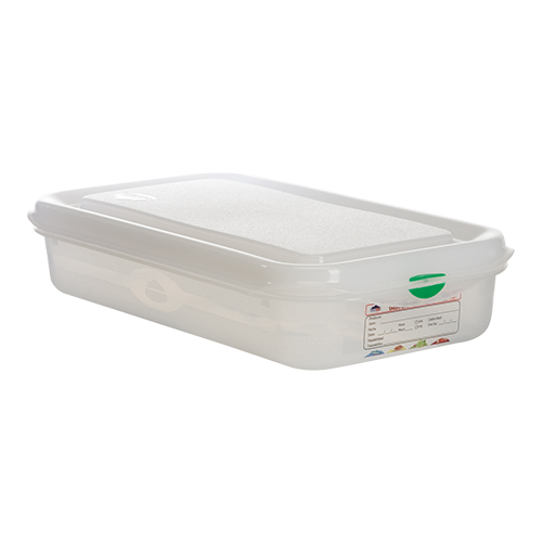 Deze voedseldoos is uiterst veelzijdig en geschikt voor gebruik in de vriezer tot temperaturen van -40°C, waardoor u met gemak voedsel kunt invriezen voor later gebruik. Daarnaast is de doos ook magnetronbestendig tot +100°C (zonder deksel), wat het opwarmen van maaltijden snel en eenvoudig maakt. Dit maakt de Voedseldoos GN1/3 |065 mm| een onmisbaar hulpmiddel in elke keuken, of u nu restjes wilt bewaren of maaltijden wilt voorbereiden voor drukke dagen.