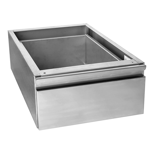 Het ladenblok |1xGN1/1| is vervaardigd uit hoogwaardige materialen die bestand zijn tegen de intensieve omstandigheden van een professionele keuken. De stevige constructie zorgt ervoor dat het ladenblok bestand is tegen dagelijks gebruik en slijtage, terwijl het strakke en moderne ontwerp perfect aansluit bij de esthetiek van Multinox werktafels. Dankzij de eenvoudige installatie en compatibiliteit met verschillende tafelconfiguraties, kunt u uw werkruimte optimaal benutten en aanpassen aan uw specifieke behoeften.